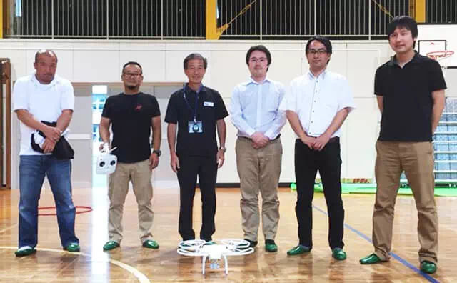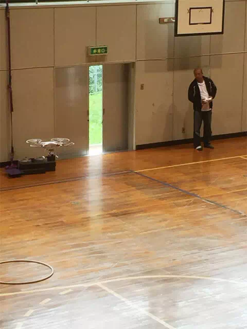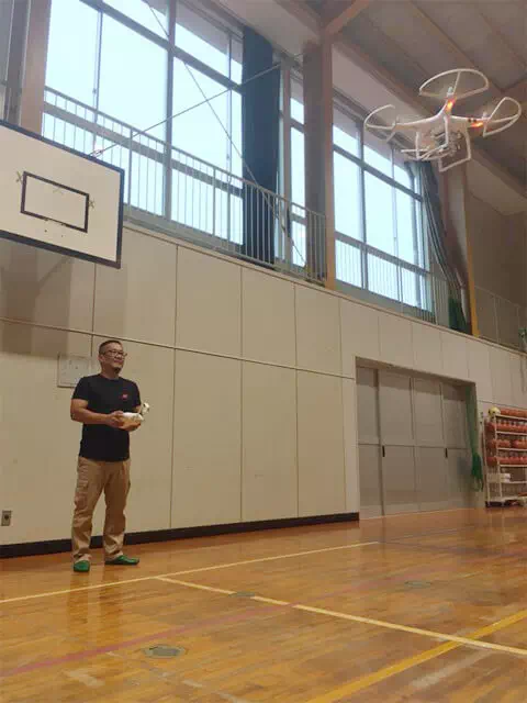 さて、この日は千葉長南校で講習です!写真は体育館での飛行練習の様子。実際にドローンを操縦して感覚をつかみます。