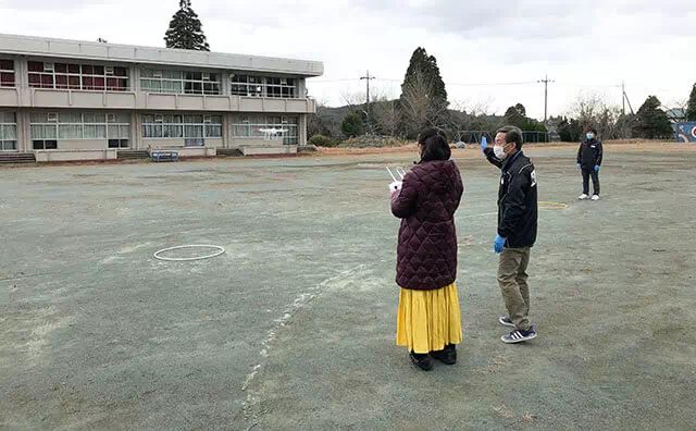 ドローンを飛ばす前にまずは基本操作やルールなどを講師が丁寧に説明します。
