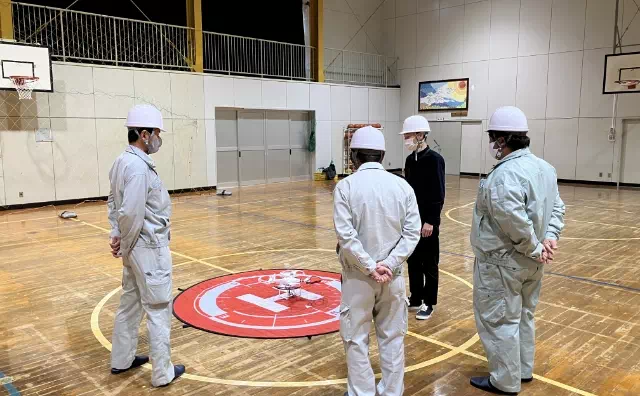 初日はグラウンドでのフライト練習を予定していましたが、風が強く体育館での練習に変更になりました。 GPSを切った屋内練習からスタートとなり、難しい操縦の中、頑張って練習していただきました。