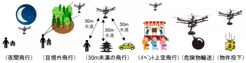 出典:国土交通省ホームページ(2)無人航空機の飛行の方法[承認が必要となる飛行の方法] 出典元情報